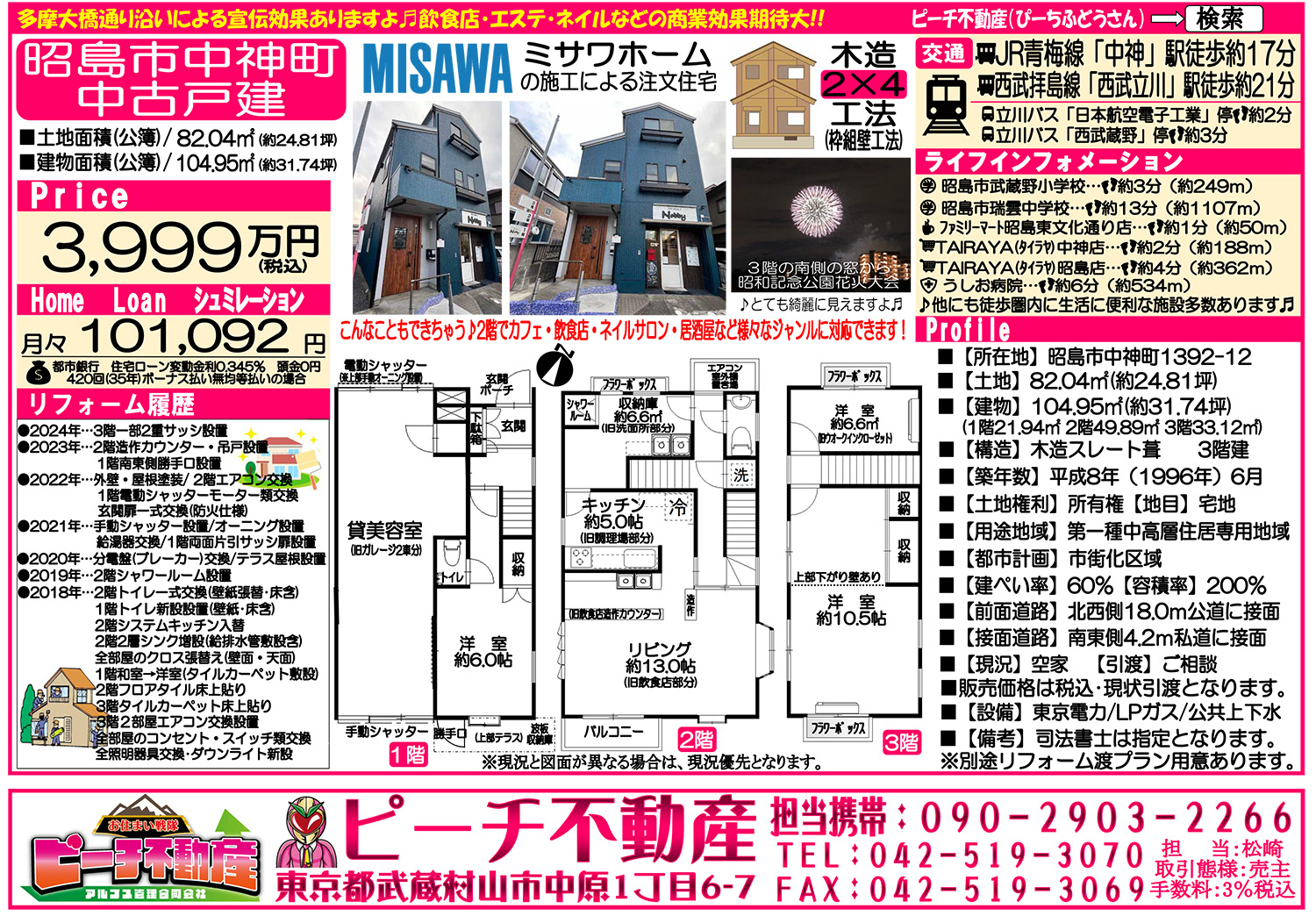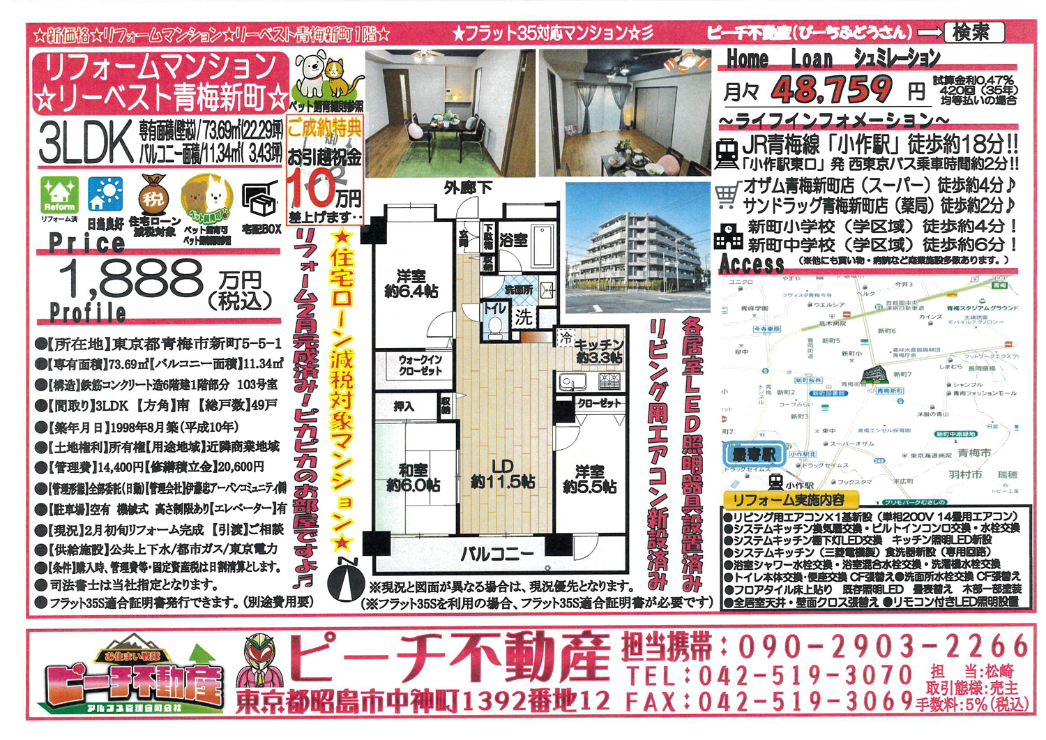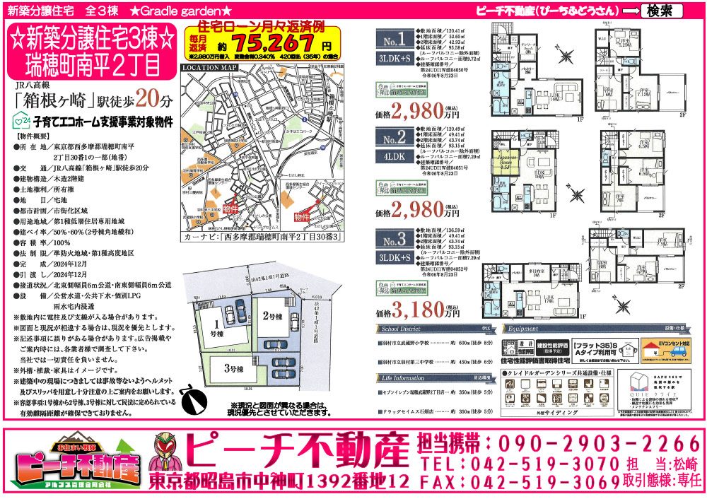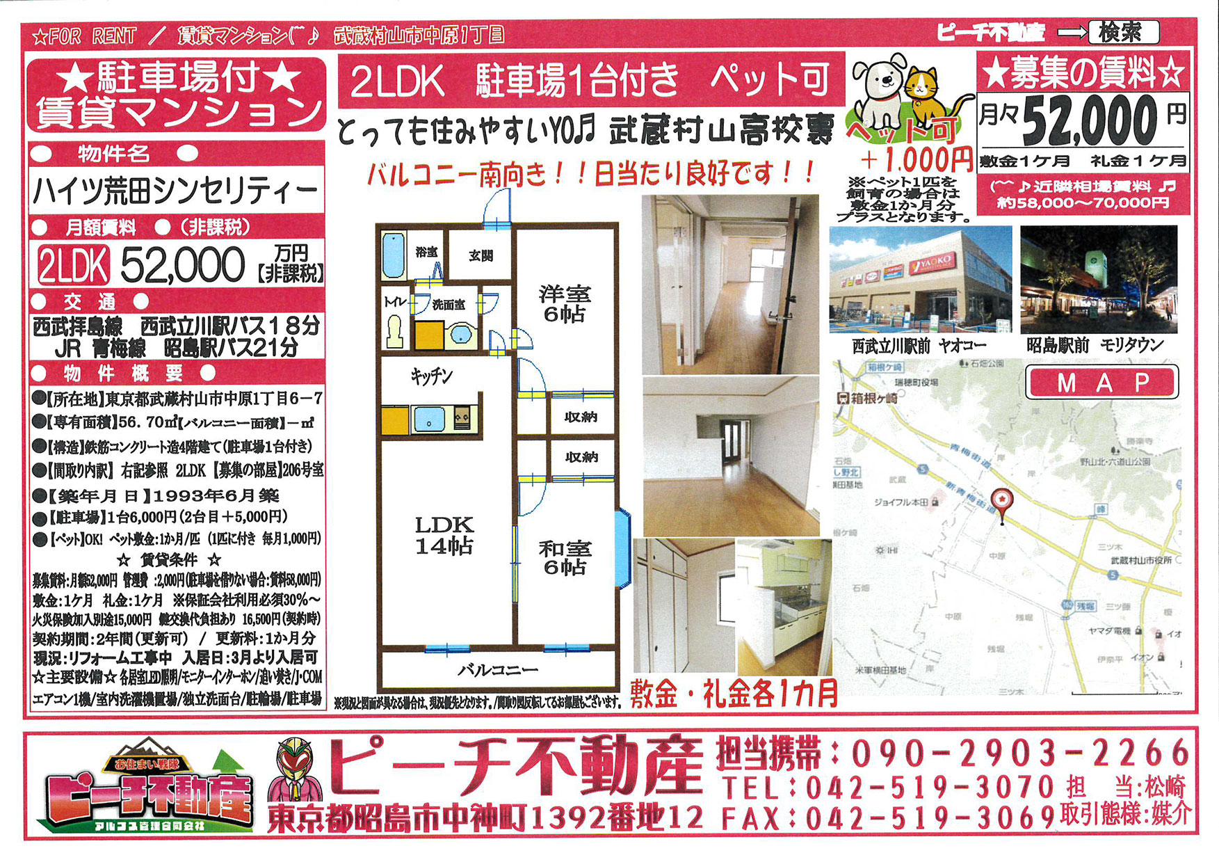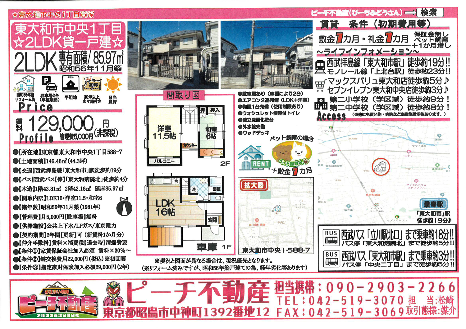 ピーチ不動産は平成25年に武蔵村山市・立川市・昭島市を中心に、