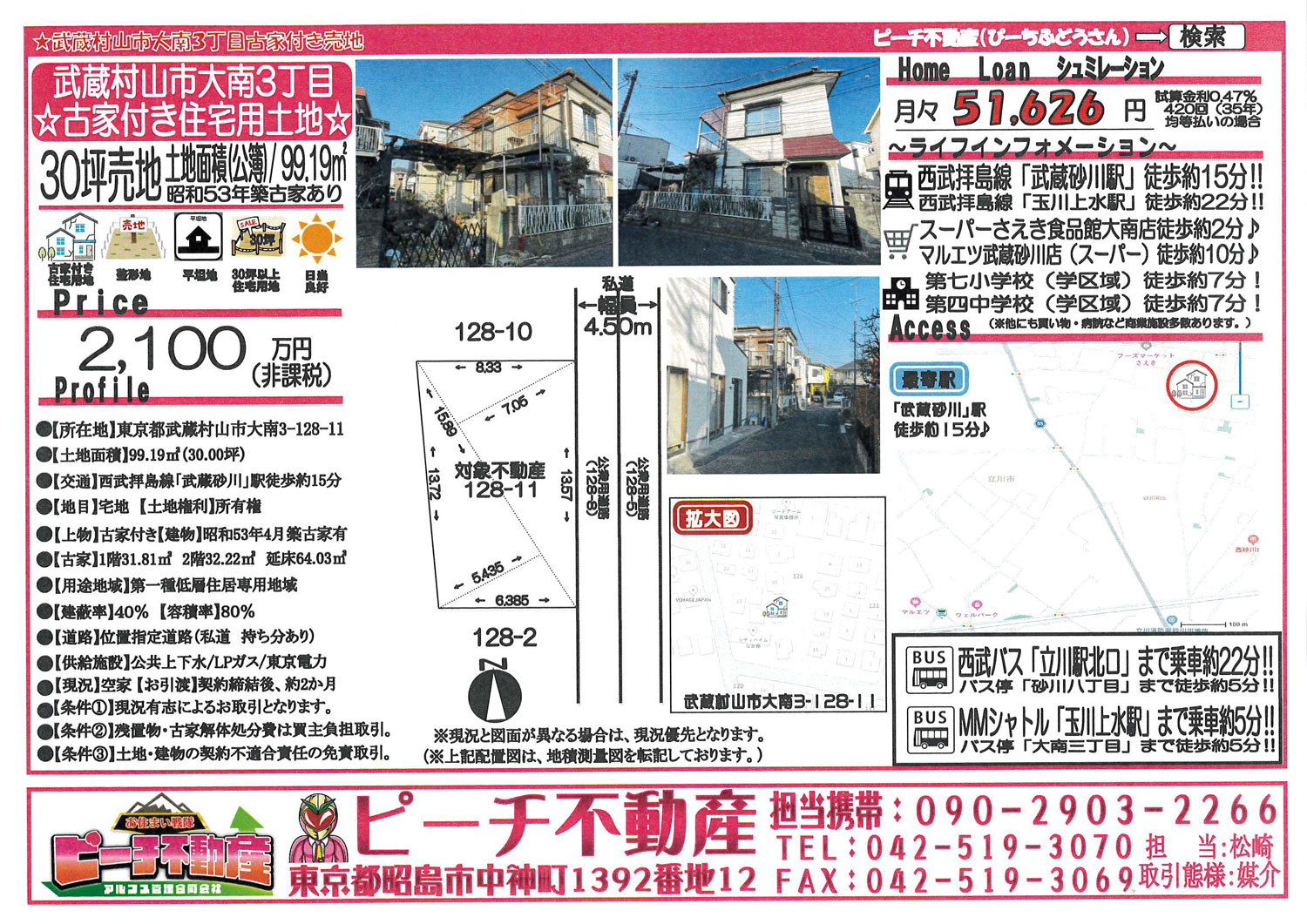 武蔵村山市大南3丁目☆古家付き住宅用土地☆SOLD OUT